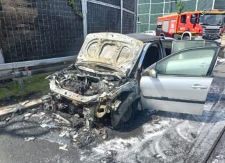 Tychy: Na DK1 spalił się samochód. Utrudnienia w ruchu