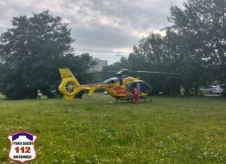 Poparzony senior w Tychach. Na al. Jana Pawła II lądował helikopter LPR