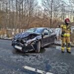 Czołowe zderzenie z pijanym kierowcą w Tychach. Droga była zablokowana, kilka pojazdów uszkodzone