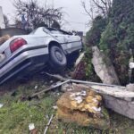 Tychy: Piany 22-latek uderzył samochodem w latarnię. Wszystko nagrały kamery [wideo]