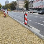 Ulica Grota-Roweckiego będzie węższa dla samochodów. Miasto przebudowuje absurdalną ścieżkę pieszo-rowerową
