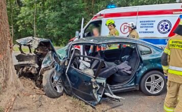 19-latek z impetem uderzył w drzewo. Potrzebny był helikopter LPR