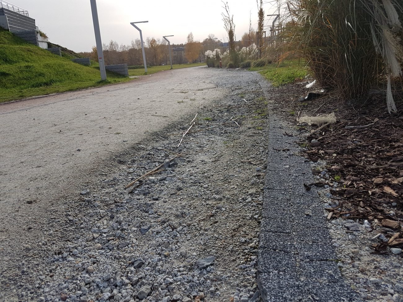 Na fragmentach ścieżek już widać problemy wywołane przez nadmiar wody oraz rośliny.