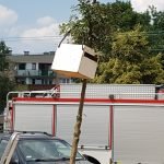 Eksmisja pszczół z centrum Tychów. W rejonie ulicy Dmowskiego 9 w Tychach po godzinie 11.00 pojawili się strażacy, którzy zabezpieczyli część chodnika. Mieszkańcy nie wiedzieli o co chodzi, ale jak się okazało winna są pszczoły.