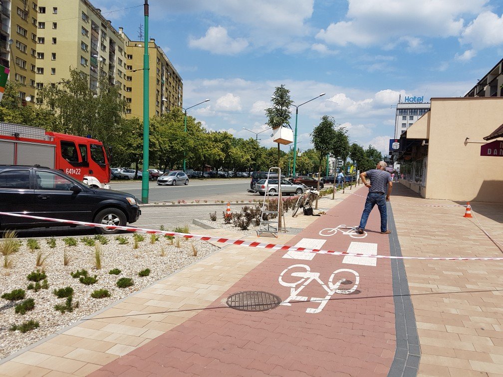 Eksmisja pszczół z centrum Tychów. Chodnik częściowo zablokowany