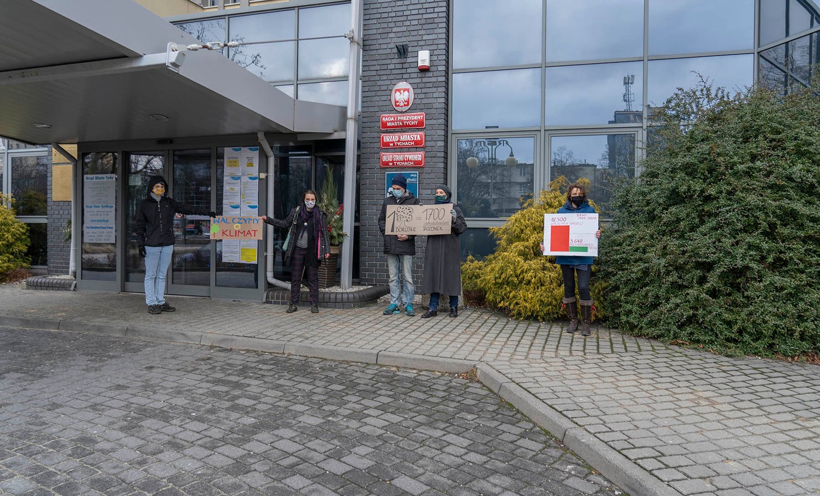 Dzisiaj o godzinie 15.00 przed gmachem tyskiego magistratu zgromadziło się 5 osób, które manifestowały swoje niezadowolenie z działań na rzecz klimatu przez władze centralne oraz samorządowe.