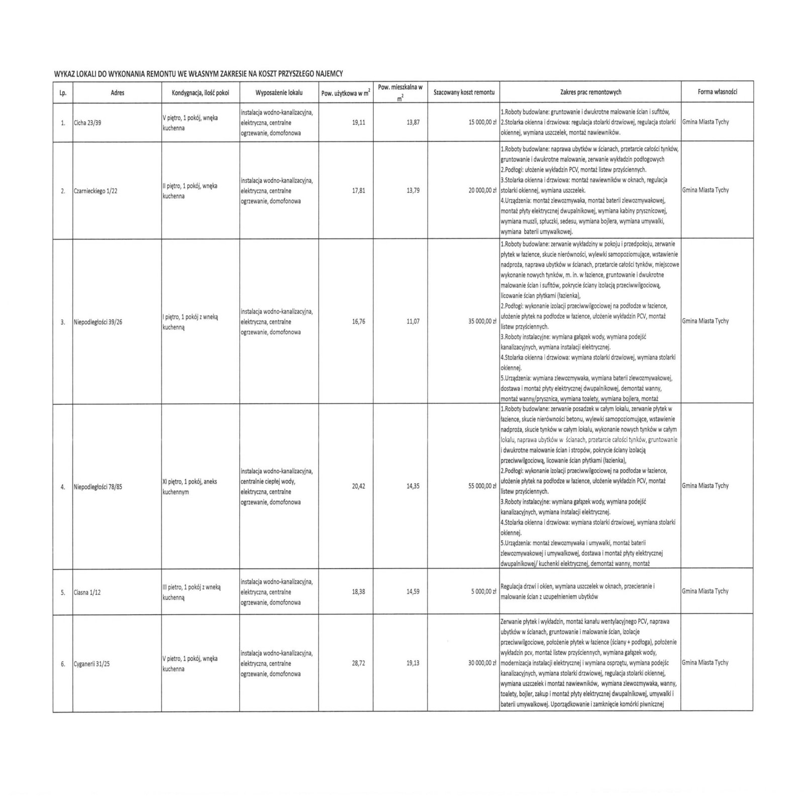 W sumie wystawiono w ramach programu 10 mieszkań. Większość poniżej 20 mkw, tylko jedno miało 28 mkw. Mieszkańcy dosadnie komentowali wybrane przez miasto lokale, poniżej zestawienie ich wypowiedzi (pisowni oryginalna).