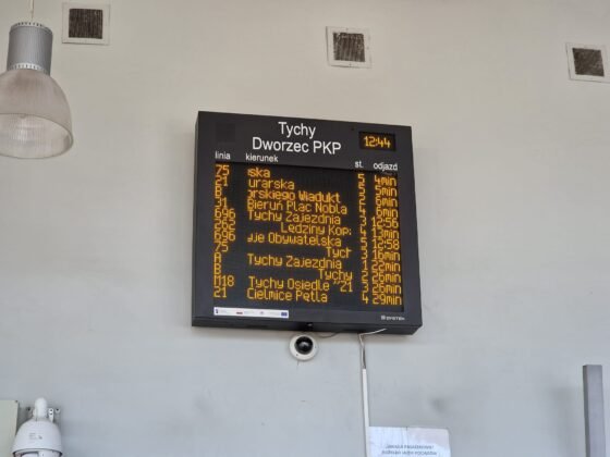 Na Dworcu PKP w Tychach powieszono tablicę elektroniczną informującą o odjeździe najbliższych autobusów i trolejbusów. Co z odjeżdżającymi pociągami? No właśnie, tego chyba nikt nie wziął pod uwagę.