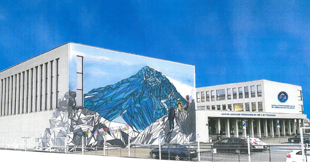 Na ścianach Zespołu Szkolno-Przedszkolnego nr 4 przy ul. Pogodnej 37 w Tychach powstaje mural poświęcony polskim himalaistom: Jerzemu Kukuczce, Wandzie Rutkiewicz i Krzysztofowi Wielickiemu. Prace rozpoczęły się na początku lipca i realizowane są w ramach Budżetu Obywatelskiego.