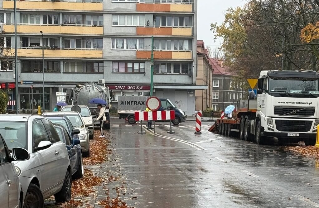 Ponownie zamknięto wjazdy na ulicę Grota-Roweckiego. Utrudnienia potrwają kilka godzin, to dalszy etap prac przy wymianie nawierzchni.