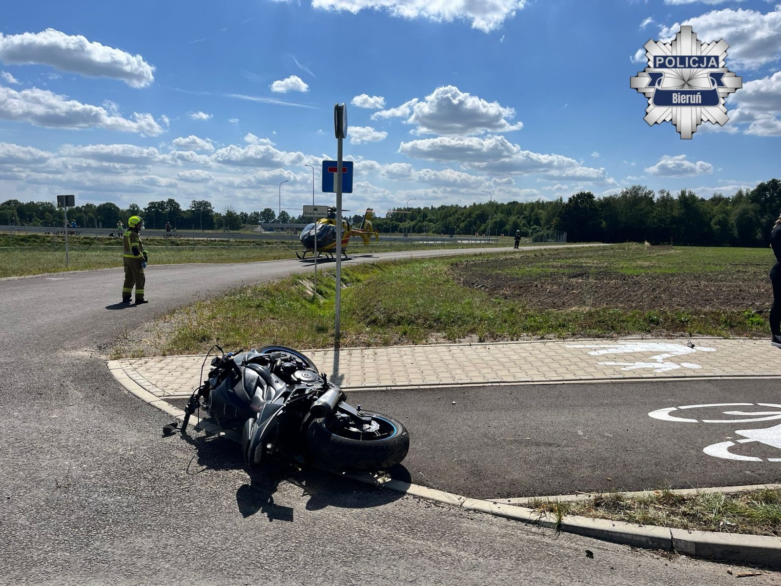 Na miejsce zadysponowano strażaków z KM PSP Tychy, zespół ratownictwa medycznego oraz śmigłowiec Lotniczego Pogotowia Ratunkowego. Rowerzysta został przetransportowany śmigłowcem LPR do Górnośląskiego Centrum Zdrowia Dziecka w Katowicach Ligocie, natomiast motocyklista trafił karetką do Szpitala Megrez w Tychach.