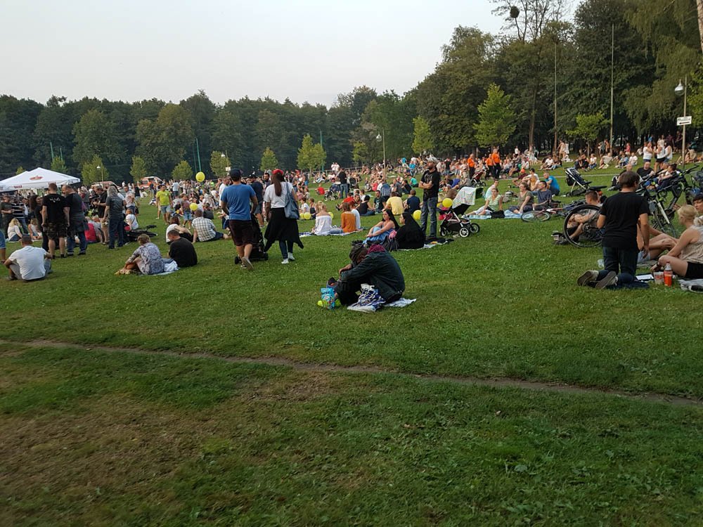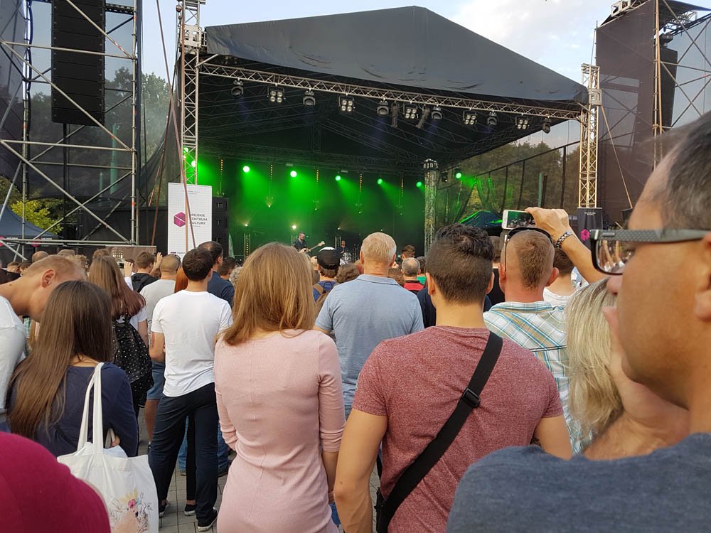 Frekwencja dopisała, tłumy zalegały na trawie, pod słynnym pomnikiem – teraz już dosłownie Żyrafy – i pod sceną. Ludzie też oblegali Park Miejski z praktycznie każdej strony. Znakomicie sprawdził się układ sceny, którą zwrócono plecami do ulicy Edukacji.
