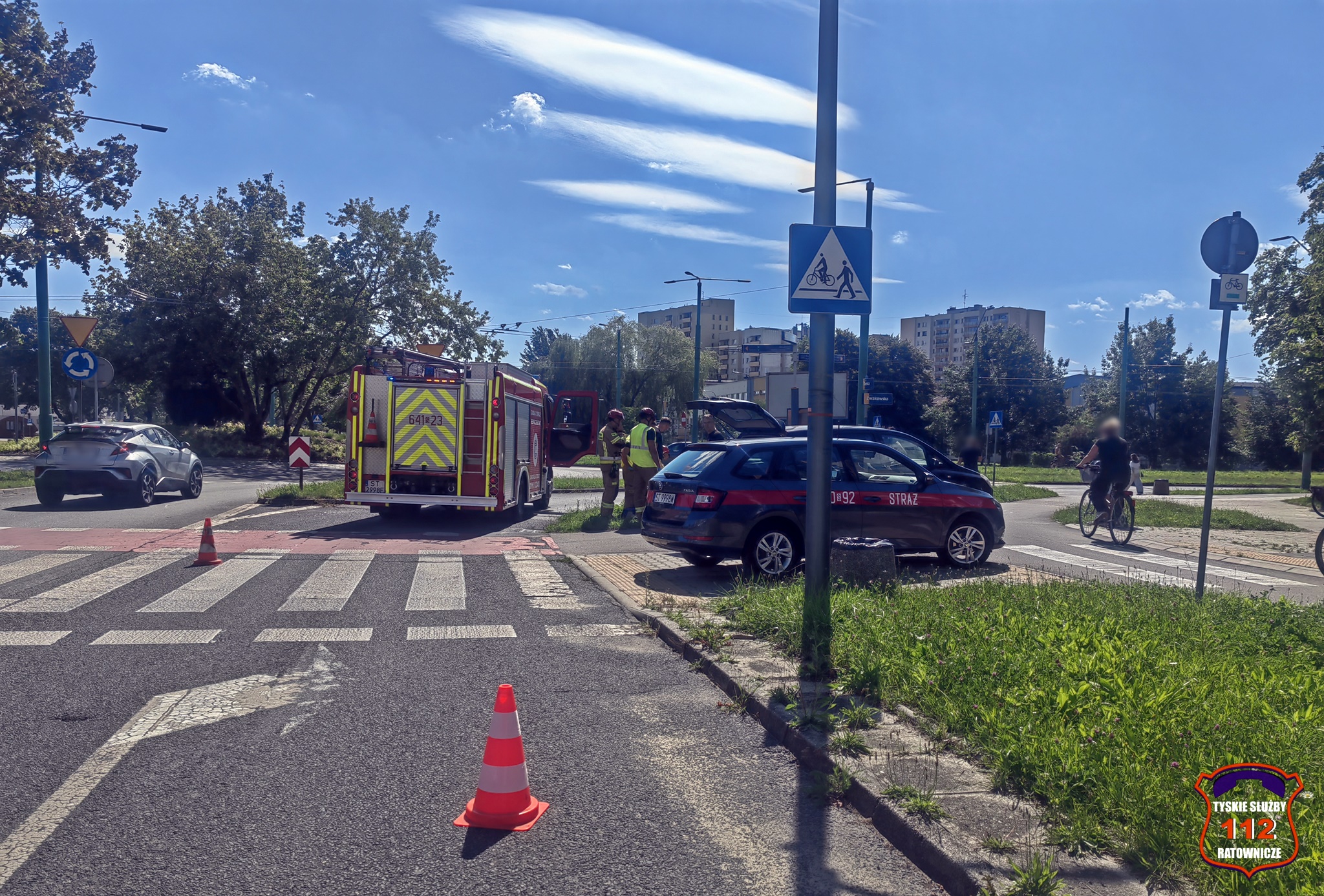 Do groźnie wyglądającego zdarzenia drogowego doszło dzisiaj, tj. 8 sierpnia około godziny 14:25 w Tychach na oznakowanym przejściu dla pieszych z wyznaczoną ścieżką rowerową przy rondzie Polonia (skrzyżowanie al. Jana Pawła II, al. Bielskiej i ul. Żwakowskiej).