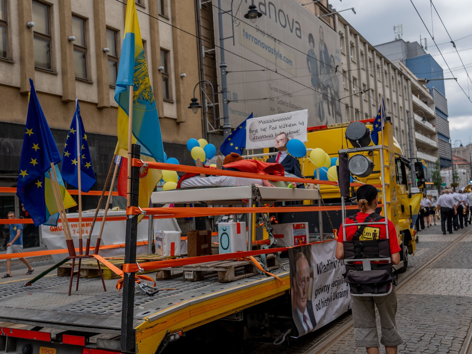 Tyszanie dzisiaj jechali do Katowic. Odbył się Marsz Autonomii Śląska. Krzyczeli, że autonomia to nie skrajność, autonomia to normalność. Na lawecie za to wieziono podobiznę Andrzeja Dudy, Prezydenta RP przedstawiono jako dziecko, które boi się śląskiej godki.
