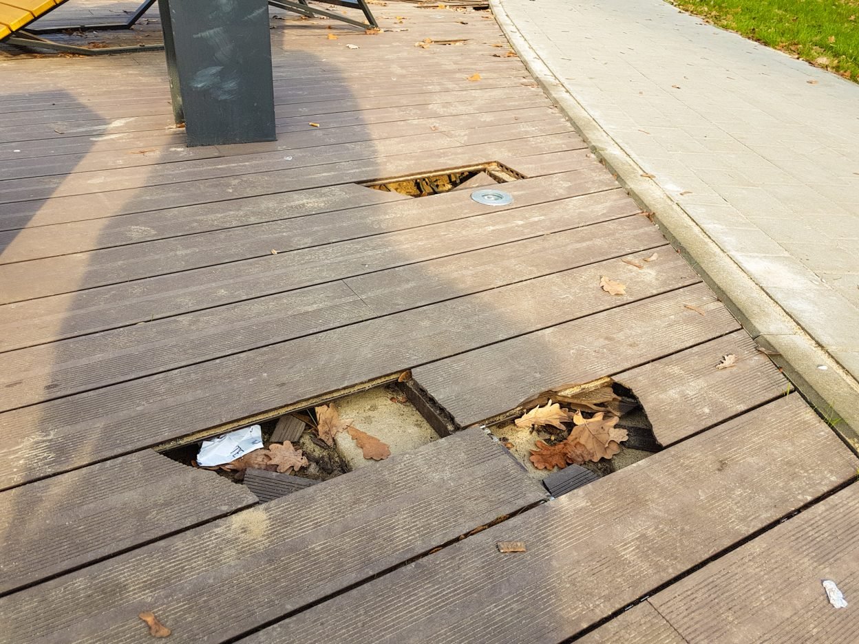 – Kazaliśmy zmienić strukturę i mocowanie desek kompozytowych – powiedział nam Agnieszka Lyszczok, dyrektor Tyskiego Zakładu Usług Komunalnych (TZUK). Skwer będzie bardziej wytrzymały. – Chcemy zrobić mniejsze szczeliny pomiędzy deskami, tak żeby nie można było włożyć czegoś między nie i ich powyrywać – dodaje.